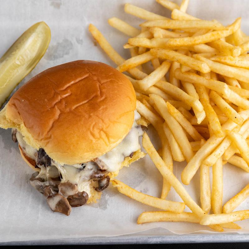 Savor the rich and earthy flavors of this smash burger, topped with sautéed mushrooms and melted Swiss cheese, creating a deliciously savory experience that's sure to delight your taste buds!
