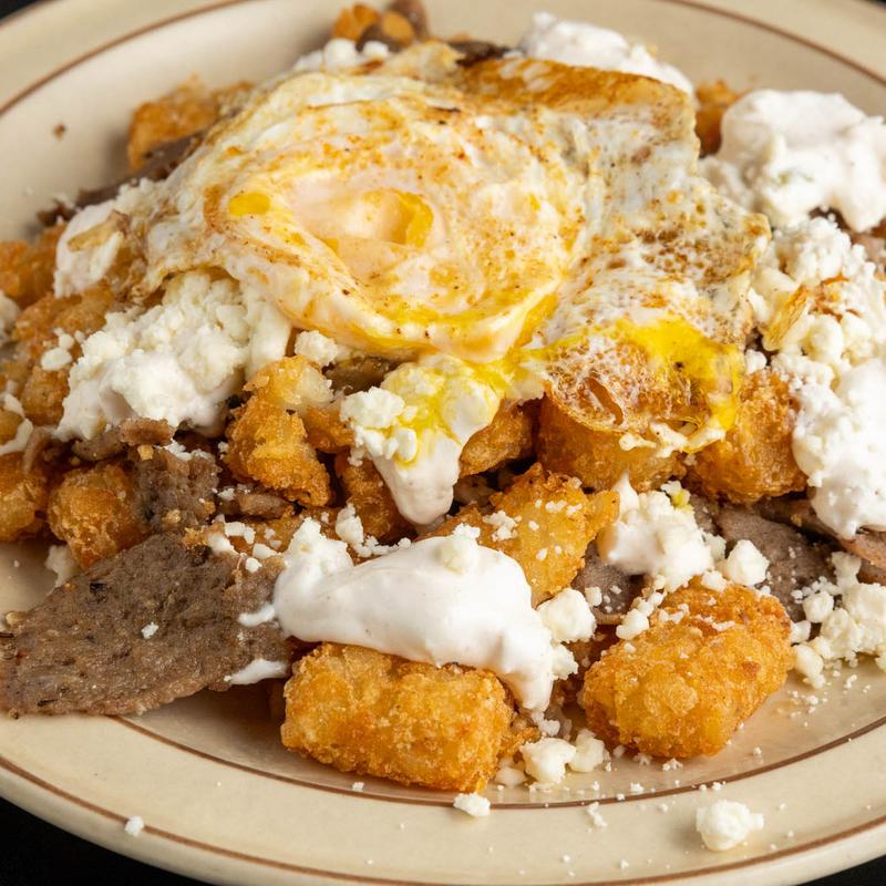 Includes one over-easy egg (unless otherwise specified) served with tzatziki and feta cheese